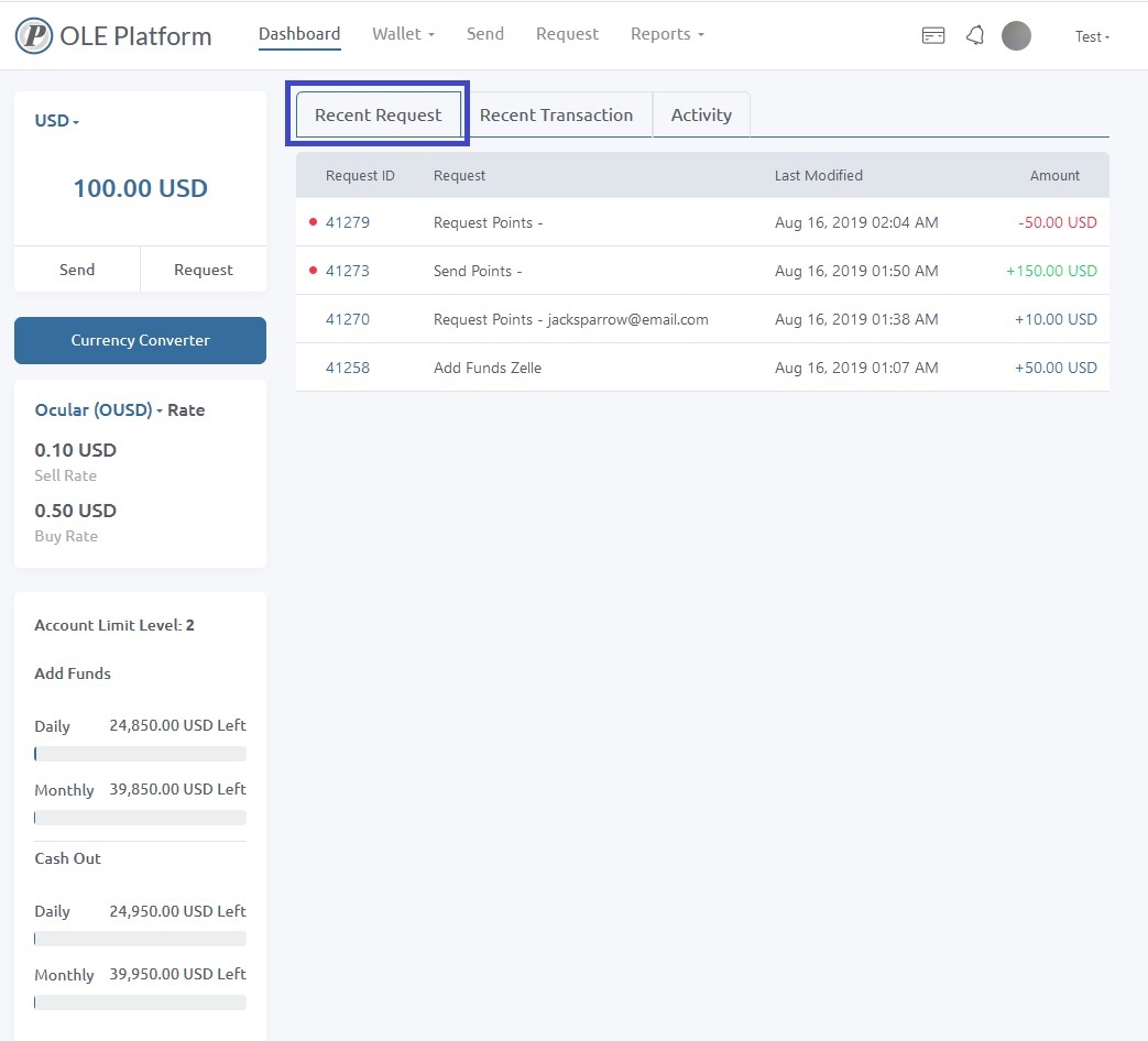 Option 1: You can view your "Recent Requests" on your "Dashboard". You just need to make sure you have clicked on "Recent Requests".